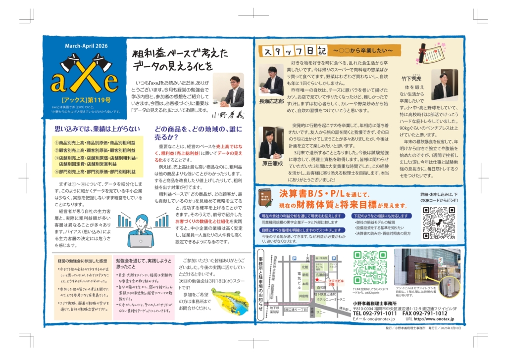いつも『axe』をお読みいただき、ありがとうございます。今月も経営の勉強会で学ぶ内容と、参加者の感想をご紹介していきます。今回は、お客様づくりに重要な「データの見える化」についてお話します。